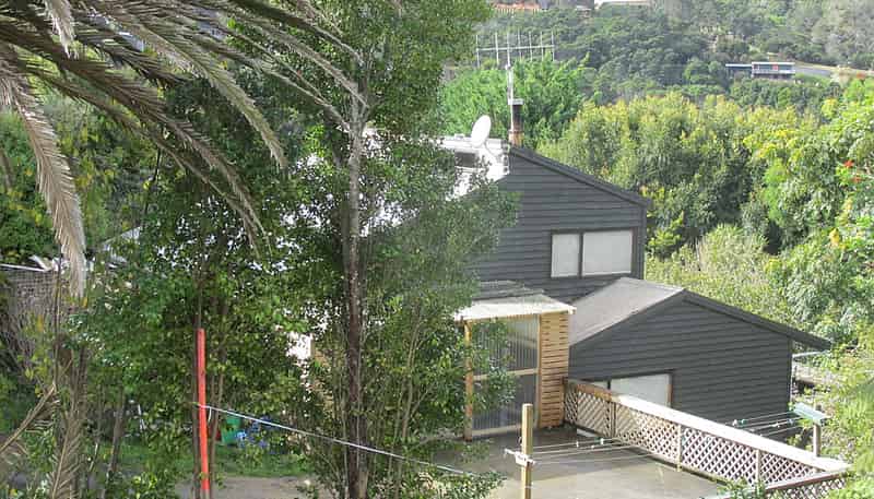 Interesting split level floor plan. 2 plus large bedrooms, an ensuite plus a bathroom. Comfortable, spacious living area with a wood burner, separate kitchen, wide decking. Downstairs there is at least 3 car garaging plus 2 workshops. On the upper level, also a double car deck.